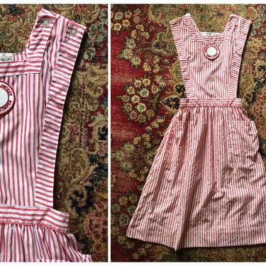 Apron Dress Red Striped Jumper Mini Dress 70s Pinafore Candy Striper Bib Overall Dress Vintage 1970s Uniform Sundress Extra Small 2xs Xxs